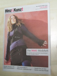 Uups, es ist schon Wochende. Und es fehlt der wöchentliche Lektüretipp. Here we are. Die Straßenzeitung Hinz und Kunzt in Hamburg hat ein Heft produziert, dass sich nur um ökofaire Mode dreht. 56 Seiten zum Thema, wie man mit sauber und sozialverträglich produzierten Klamotten die Welt verbessern kann. Alle Models im Heft sind Obdachlose, die die Zeitung auch selber verkaufen, um ihren Lebensunterhalt zu verdienen. Für die Hamburger gibt es einen Einkaufsführer, wo die Ökomode denn in der Hansestadt zu bekommen ist. So etwas sollte es für jede Stadt geben, finde ich. Für Hamburger derzeit an jeder Straßenecke zu haben, für alle anderen: info@hinzundkunzt.de
