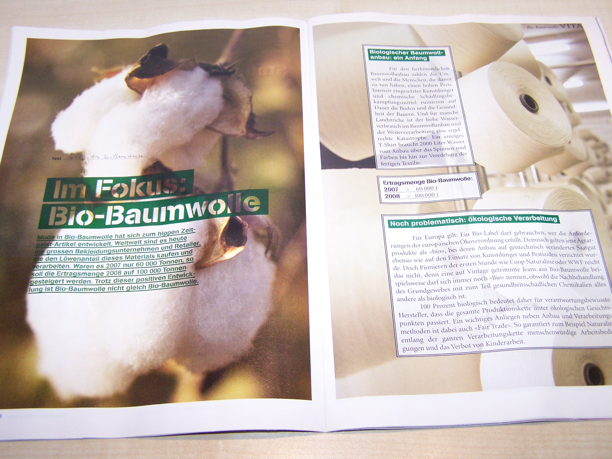 Was mich beeindruckt, ist wie die Schweizer Coop an die Kunden und den Megatrend Bio glaubt. Sie haben sich nicht nur ein Magazin geleistet, sondern das Ding auch für einen gewaltigen Haufen Franken vieltausendfach als Beilage in die konservative NZZ eingeschossen. Das hat für mich „Wow“-Faktor. Warum die Neue Zürcher Zeitung? Tja, deren Leser sehnen sich angesichts der Halunken in der Banken offenbar nach der Rückkehr von sittlichen Werten. Und da kommt ihnen die sauber und sozialverträglich hergestellte Kleidung gerade recht. Tja, könnte doch sein, oder? Die Rückkehr der Sittlichkeit angesichts des modernen Raubrittertums?