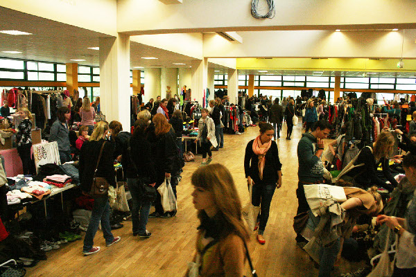 An über 150 Ständen von mehr als 200 Verkäufer_innen gab es vorrangig Kleidung und Schuhe, die kaum mal älter als 3 Saisons waren. Entsprechend modisch sowohl die Verkäuferinnen als auch das Publikum. Gut 2000 zahlende (Eintritt 3 euro) Besucherinnen zählten die Veranstalterinnen. Männer durften natürlich auch rein und weil es für die ja nichts zu kaufen gab sogar umsonst.