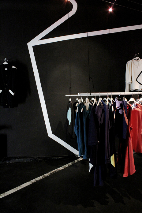 In Neuköln habe ich dann den neuen Atelierladen von treches besucht. Komplett in schwarz, wobei sich das neue treches Logo in weiß durch den Raum zieht. Hingehen lohnt sich schon alleine für dieses kleine Raumgestaltungskunstwerk. Die neue Kollektion ist erneut avantgardistisch-urban. Ein Kleid ist komplett mit einem Muster aus einem verfremdeten Foto bedruckt, eine Hose ebenfalls. Etwas unauffälliger aber mit tollen Details kommen die Sweater und T-Shirts daher. Einen kleinen Einblick gibt es hier.
