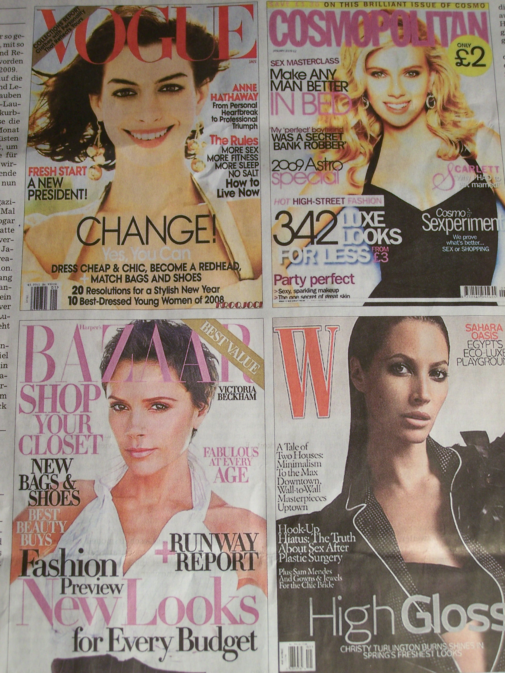 Melde mich zurück vom Studieren der Wochenendausgaben. Rebecca Casati beschreibt in der Süddeutschen Zeitung, dass die Hochglanzmagazine demonstrativ auf die Rezession reagieren.
