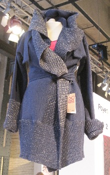 Aus Anlass der kommenden Winterspiele in Sotschi 2014 hat sich Room to Roam für seine Kollektion vom Kaukasus inspirieren lassen. Traditionelle Muster und Farben treffen auf klare moderne Schnitte. Der Wollstrick ist hier komplett kbt und als besonderes Highlight in einem sehr edlen dicken Cardigan partienweise mit einem goldenen Glitzerfaden verarbeitet (ja, der Glitzerfaden ist nicht öko…).