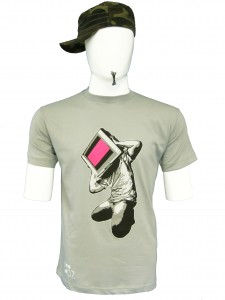 Inzwischen sind es viel weniger: Je 100 Stück gibt es etwa vom US-Schablonenkünstler Scotch, der drei Motive für die Berliner gemacht hat, darunter das mit den drei Roller-Mädchen oben, genannt Tri Girls. „Die Leute kaufen unsere Shirts wegen der Motive“, sagt Daniel, „nicht, weil sie öko und sweatshopfree sind“. Das sei das Plus obendrauf. Produziert wird in der Türkei, gedruckt in England, in einer Druckerei, die von der Soil Association, dem britischen Ökolandbauverband, zertifiziert ist. Aber natürlich gehe es hier trotzdem um Botschaften. Ihre Streetart-Künstler stammten aus einer Szene, die der Welt was erzählen wolle, auch wenn nicht „Fuck War“ drauf stünde. Dafür aber vielleicht ein Mann zu sehen sei, der statt eines Kopfes einen Fernseher hätte wie der TV Head des britischen Künstlers AME72.