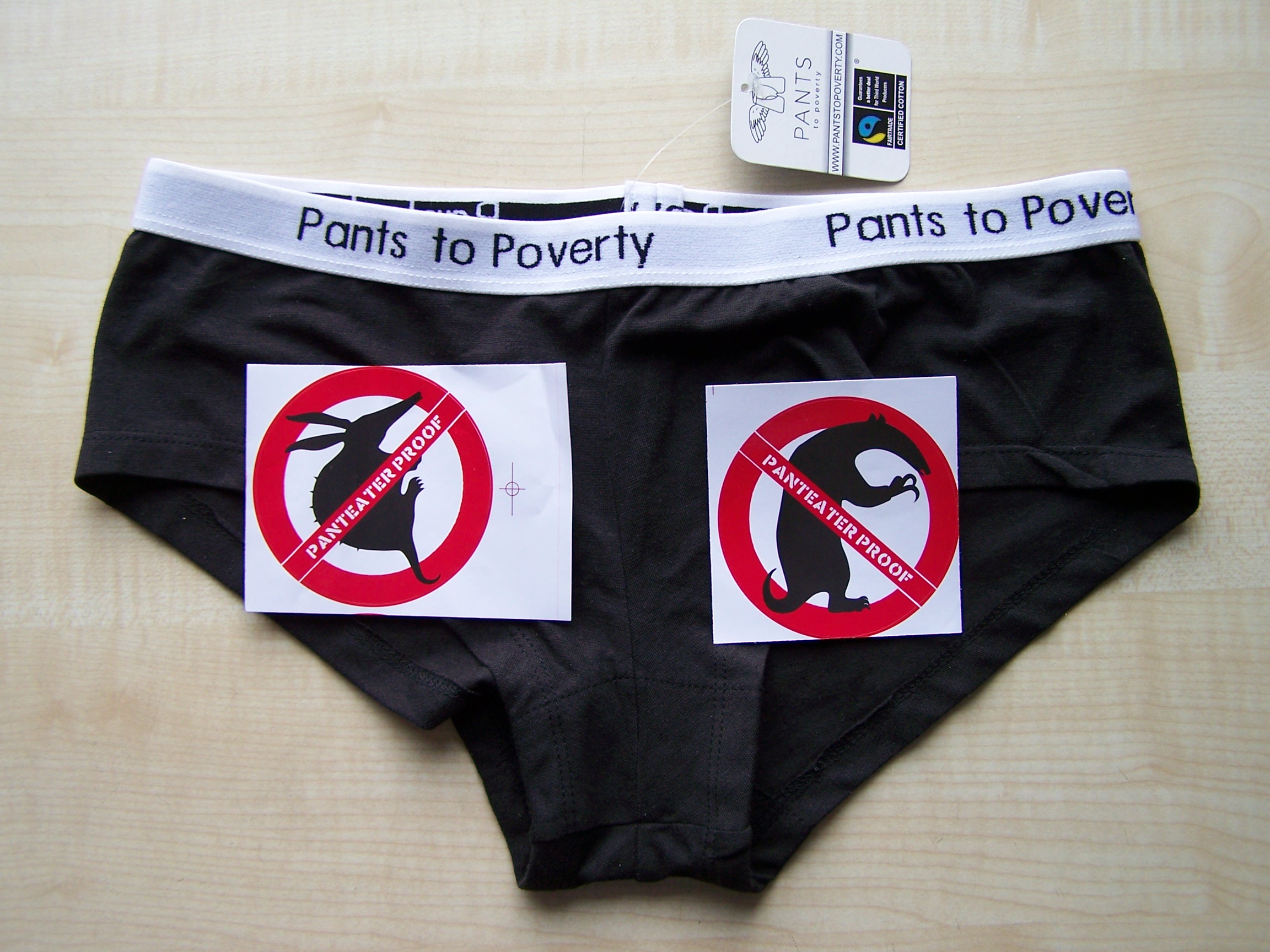 Bevor ihr wie Jessie Welk von dem mythischen Ameisenbär-ähnlichen Panteater angefallen werdet (siehe Videospot), der euch eure pestizidgetränkte Unterwäsche vom Leib reißt, solltet ihr die Hosen-Amnestie nutzen. Gebt eure schmutzig produzierten Unterhosen bei einer der weltweiten Sammelstellen von „Pants to Poverty“ ab und tauscht sie gegen einen sauber und sozialverträglichen Slip. Deutschlandstart der Aktion ist heute Mittag in Berlin bei Glore in der Rosa-Luxemburg-Straße 27.