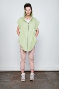 Und: 3 Kollektionsstücke wurden im Sinne des low waste-Ansatzes hergestellt, sprich: Bei der Herstellung der drei Stücke hat die Designerin versucht, so wenig textilen Abfall wie möglich entstehen zu lassen. Schöner Ansatz – der nächste Schritte wäre dann Zero Waste.