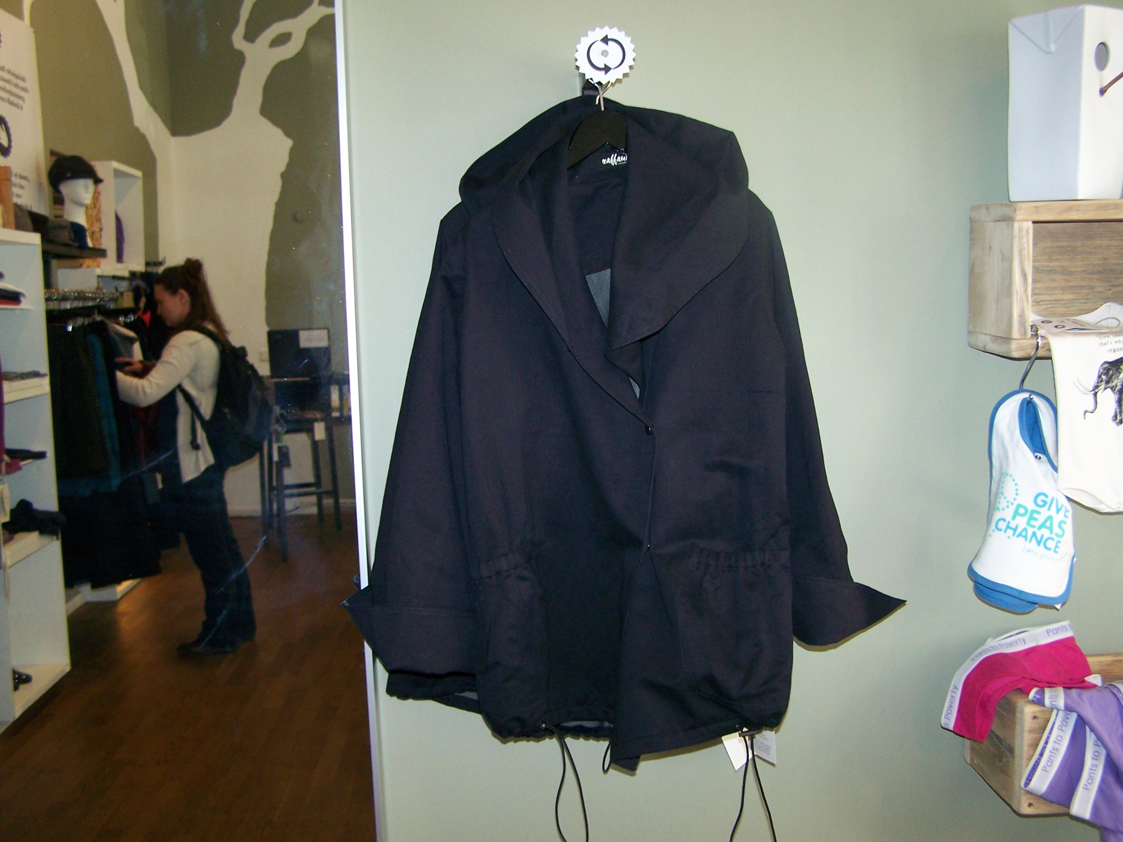 Da gibt es Grobgestricktes und Pflanzengefärbtes von Caro E., was einen wärmt und Metropolen-Mode von Slowmo mit Jacken und weitgeschnittenen Capes, in die man versinken kann – außen aus Biowolle, innen Biobaumwolle. Dann Sportives von Jovoo und Hüte, die in Kindergeschichten von Erich Kästner passen. Ach, Emil und Gustav und Pony Hütchen und Pünktchen und Anton würden heute Berlin tragen – fair produziert gleich um die Ecke.