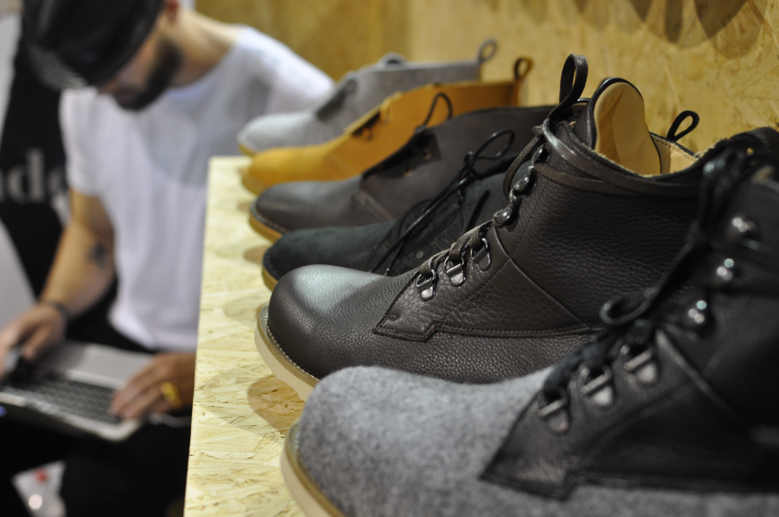 Zu guter Letzt gibt es noch zwei Highlights für alle mit sehr kleinen und ganz normal großen Füßen – wobei ich bei dem wunderbaren Noel und seinem Label ekn footwear beginnen möchte. Mit der neuen Designlinie von Daniel Bailey macht das Label einen sehr großen Schritt nach vorne. Der Look der verschiedenen Modelle hat sich über die vergangenen Seasons immer wieder verändert, allerdings nicht so radikal (im positiven Sinne) wie für den Herbst/Winter 2015/2016. Selbstverständlich werden die Schuhe weiterhin in Portugal handgefertigt und bestehen aus pflanzlich gegerbtem und chromfreien Rindsleder (gilt auch für das Futter). Verwendet werden nur chrom- und nickelfreie Metallteile und werden mit 2 Paar Schnürsenkeln und in Kartons aus recyceltem Papier geliefert. Die Rahmenbedingungen stimmten weiterhin. Doch beim Style haben Noel und Daniel eine große Schippe draufgelegt. Die Sneaker, Boots oder Deserts wirken noch mehr aus einem Guss, haben eine noch bessere Form und sind zudem an kleinen Stellen neu justiert worden. Dazu gibt es jetzt auch Gimmicks wie individuelle Stecker für die Enden der Schnürsenkel – feines Zeug für alle Schuhfetischisten.