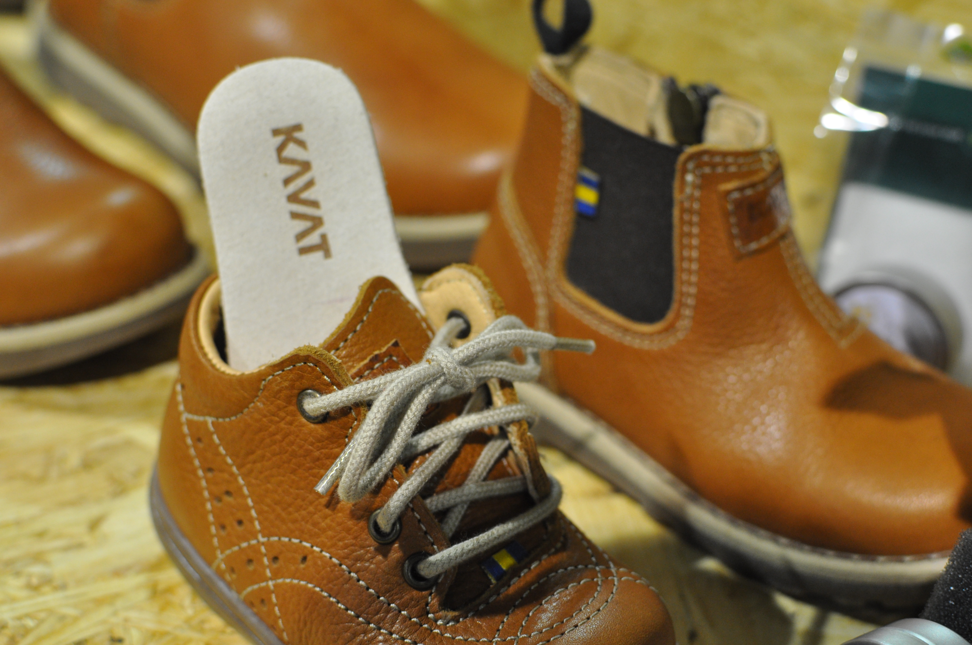 Eine Trennwand entfernt, mit einem schönen großen Stand direkt am Anfang der Reihe zeigte das schwedische Label KAVAT, was aus dem anfänglichen Kinderschuhlabel alles geworden ist. Das Label verwendet für die in Schweden designten und umweltfreundlich produzierten Lederschuhe für Kinder, Jugendliche und Erwachsene ausschließlich 3 Ledersorten, wobei in erster Linie das mit dem EU Eco-Label zertifizierte schwedische Premium Leder verwendet wird. Außerdem kommt Eco Performance Leather, chromfreies Vollleder, und Cross Country Leather, italienisches und holländisches Leder, zum Einsatz. Über allem steht aber die ausgezeichnete Verarbeitung und der hohe Tragekomfort. Natürlich hat das Label wieder seine Familienmodelle dabei – ein Modell, dass sowohl für Kleinkinder als auch Jugendliche und Erwachsene aufgelegt wurde und sich großer Beliebtheit erfreut. Schwerpunkt waren allerdings die Boots, Slipper und Halbschuhe aus der “1945”-Kollektion, die auf das Gründungsjahr von KAVAT zurückgehen und zeitlos schon geworden sind.