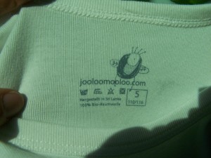 Ich hege ja absonderliche Neigungen und sammle Kleideretiketten wie andere Autogrammpostkarten. In Linz haben mich gewissermaßen zwei kontrastierende Modelle in den Bann gezogen, die ich zeigen möchte. Xiane Kangela vom Wiener Kindermode-Label „jooloomooloo“ hat gar kein Etikett mehr eingenäht, das irgendwo flattert, sondert druckt ihr Etikett direkt auf den Stoff. Ihre Marschrichtung ist klar: Nicht mehr Gedöns als nötig am Kleidungsstück. Die Motive ihrer Mode sind verspielt genug.